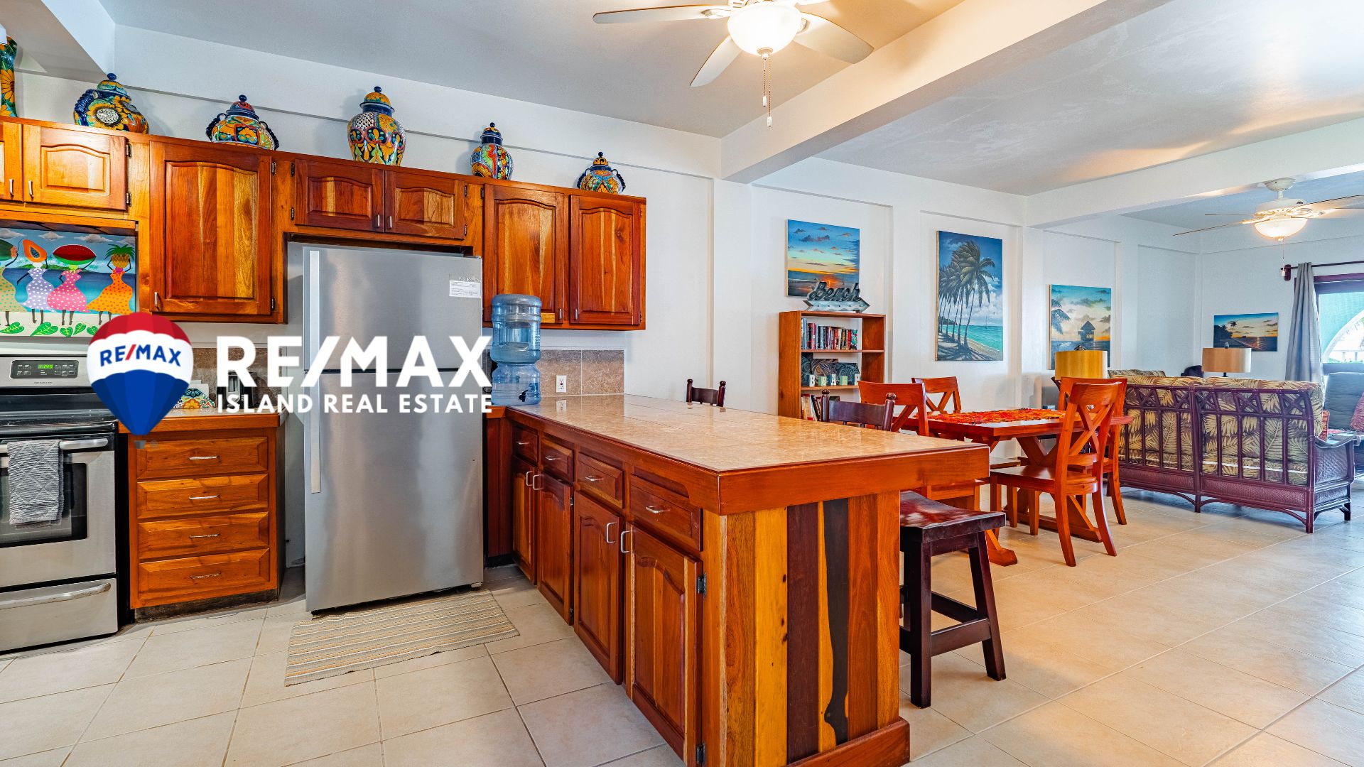 Step inside to find a thoughtfully designed, open-concept layout featuring spacious living and dining areas, perfect for entertaining or relaxing after a day of island adventures. The kitchen boasts modern appliances, a large island, and plenty of cabinet space, ideal for whipping up your favorite meals or tropical cocktails.